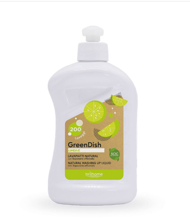 GreenDish ‘Citron' est un détergent liquide pour le lavage manuel de la vaisselle, des casseroles, des couverts, des verres et de tous les ustensiles de cuisine lavables. Sa formule spéciale contient l'extrait de Saponaria officinalis, une plante naturellement riche en détergents naturels (saponines) qui agit en synergie avec les autres tensioactifs pour éliminer toutes les saletés, même les plus tenaces. Le produit est exempt de phosphore et de colorants et a un agréable parfum de citron